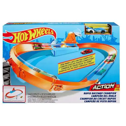 מבחר המסלולים של Champion Track עבור מירוצים אולטימטיביים מבוססי ביצועים, דריפטינג ואקשן! ילדים יכולים לבחון את כישוריהם ב-3 אתגרים הכוללים מעגל סחף, מרוץ דראג וטיפוס נועז על הגבעה. סט המסלולים של Rapid Raceway Champion הוא מרוץ דראג קלאסי עם שער התחלה מדהים. משוך את הידית למעלה ושחרר כדי להתחיל את הספירה לאחור. כאשר השערים נפתחים זה מירוץ להפעיל את דגל המנצח! כל מה שילדים צריכים כדי לצאת למירוץ ישירות מהחבילה – מסלול כתום, מירוץ זה לצד זה ומשגרים פלוס רכב אחד בקנה מידה של Hot Wheel 1:64! כל סט מתחבר לסטים אחרים של Hot Wheels (נמכרים בנפרד) לדרך נהדרת לבנות עולם אפי של מסלול. רעיון נהדר למתנה לילדים בגילאי 4 עד 8,